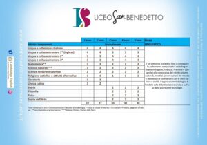 La proposta formativa si articola su un impianto tipicamente liceale con lo studio di discipline umanistiche e scientifiche arricchito e caratterizzato dallo studio di 3 lingue (Lingua e cultura Inglese, Lingua e cultura Spagnola e a scelta Lingua e cultura Francese o Lingua e cultura Tedesca), discipline tutte orientate all’acquisizione di competenze comunicative avanzate e certificate.